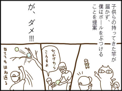 お父さんが頑張ってボールを取ってあげようとしてましたが高すぎて‥。