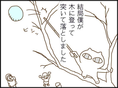 そこで、ん十年ぶりに僕が木登りをしました。