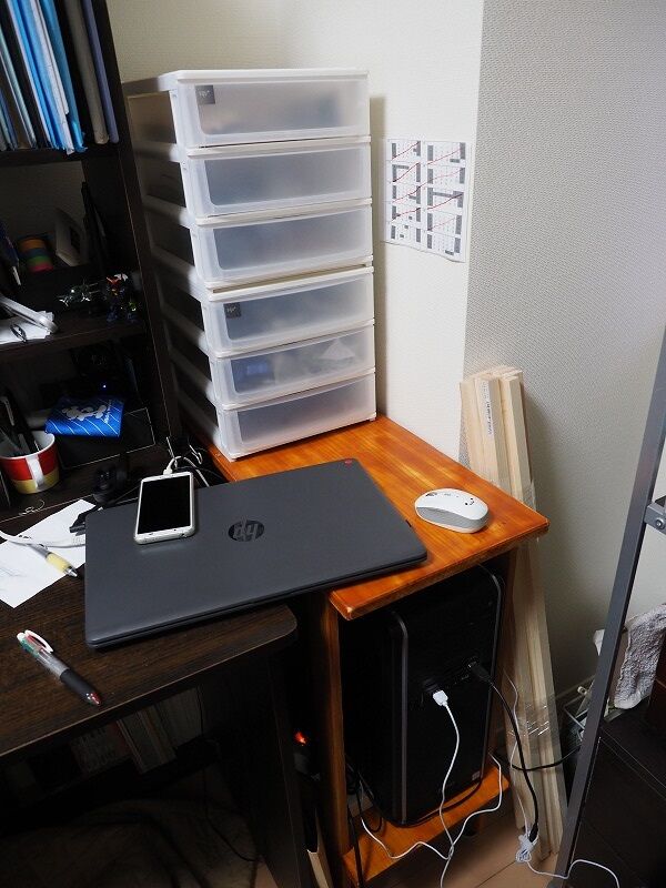 ↑前回このような机(下にPCを収納するための)を作りました。