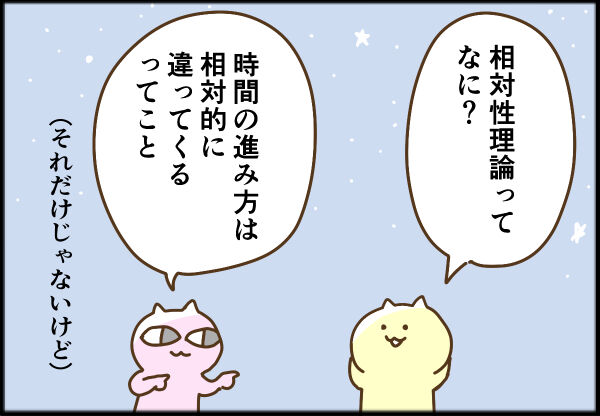 相対性理論とは 2025年09月11日 慣性系と加速系とでね。他には、光速に近づくほどその物体の質量が大きくなるとか、高速で移動する物体は前後の長さが縮むとか、そんな話だったと思う。 ↓一日一回クリックして貰えると励みになります! 「ゆうちゃん(妻)」カテゴリの最新記事 タグ :#育児#エッセイ漫画#漫画#ブログ#絵日記 < 前の記事次の記事 > コメント コメント一覧 (2) 1. ごん1.2.3 2025年10月05日 17:19 こんばんは、 10・20代と50代では時間の進み方が全然違いますね~ 新しい論文ができるかもしれない(まあそんな研究してる人がいるかも) 0 ぎんじ がしました 2. ぎんじ 2025年10月06日 05:36 >>1 ごん1.2.3さん 研究してる人はいるでしょうね。 小学生の頃は10分休みでも外でドッヂボールしてましたけど今は無理・・。 最近は仕事が忙しいのに一日がすぐ終わって、やりたかった仕事が全然進まないのがもどかしいです。 0 ぎんじ がしました コメントフォーム 名前 コメント 記事の評価 リセット リセット 顔 星 情報を記憶 コメントを投稿する
